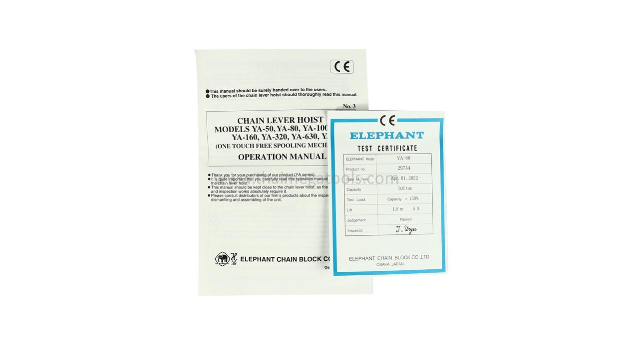 Elephant รอกโซ่มือโยกตราช้าง YA-80 ขนาด 0.8 ตัน ยกหนักปลอดภัย มาตรฐานญี่ปุ่น