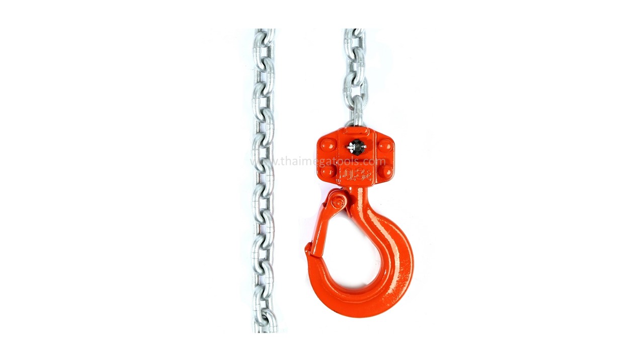 - ความปลอดภัยสูง ตะขอมีลิ้นล็อก (Safety Latch) กันหลุดป้องกันการคลายตัว หนาพิเศษ ป้องกันการหลุดของสายสลิงหรืออุปกรณ์ที่ยก ช่วยให้การทำงานราบรื่นและปลอดภัย