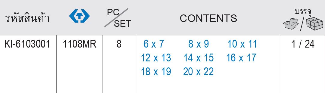 เป็นเครื่องมือช่างคุณภาพสูง ผลิตจากเหล็กโครมวานาเดียมอัลลอยด์ 8 ชิ้น สำหรับงานซ่อมบำรุงทั่วไปในระบบมิลลิเมตร