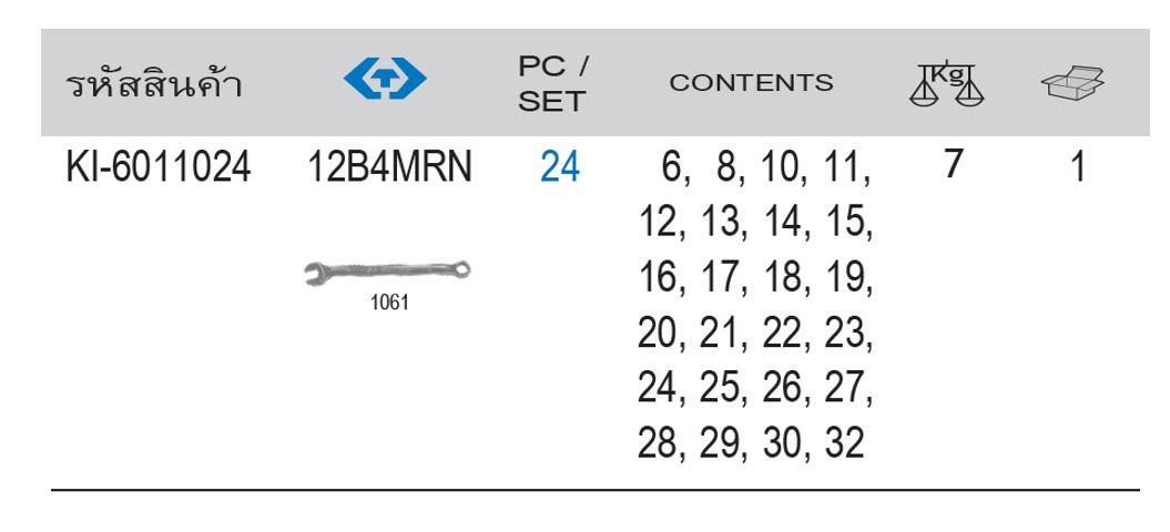 KINGTONY ชุดประแจแหวนข้างปากตายตัวยาว 24 ตัว/ชุด 112B4MRN