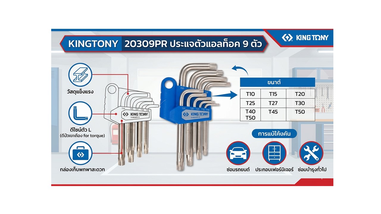 KINGTONY ประแจตัวแอลท็อค 9 ตัว 20309PR เหมาะกับการใช้งานที่ไหน
