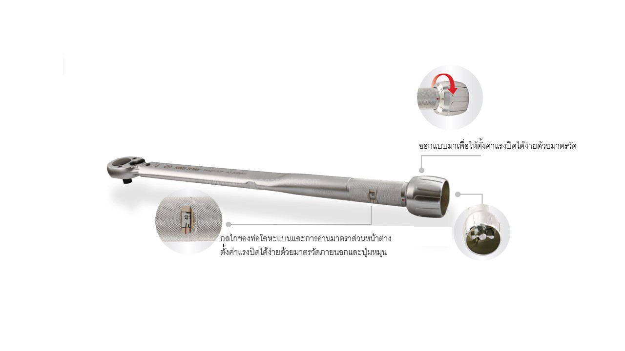 - ระบบคลิกเสียงดังพิเศษ ได้รับการออกแบบให้มีเสียงคลิกที่ดังและชัดเจนเป็นพิเศษ เมื่อถึงค่าแรงบิดที่ตั้งไว้ ทำให้มั่นใจได้ว่าขันถูกต้องแม้ในสภาพแวดล้อมที่มีเสียงดัง
