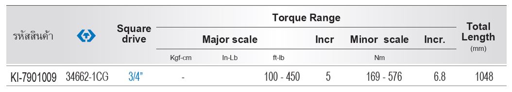 ประแจรุ่นนี้มีช่วงแรงบิด 169-576 Nm นิวตันเมตร ประแจรุ่นนี้จึงเหมาะสำหรับงานที่เกี่ยวข้องกับชิ้นส่วนขนาดกลางถึงใหญ่ที่ต้องการแรงขันที่แม่นยำ