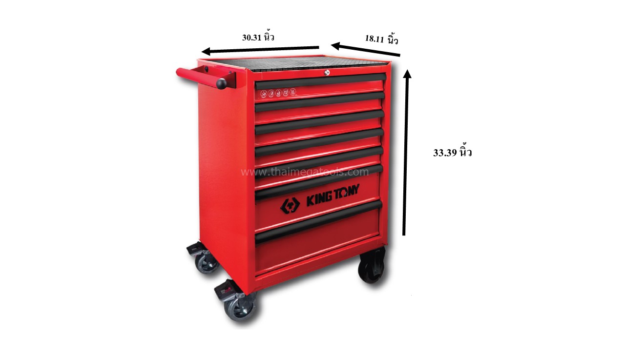 - ตู้เครื่องมือมีล้อเลื่อนสำหรับการเคลื่อนย้ายที่สะดวก แต่อย่าลืมล็อกระบบกันเปิดลิ้นชักก่อนเคลื่อนย้ายเพื่อป้องกันเครื่องมือหล่นกระจาย