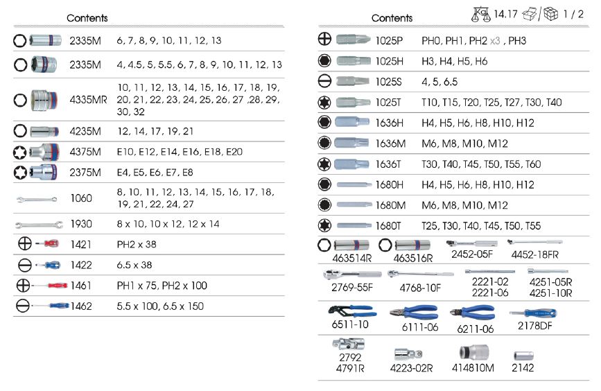 - ประแจแหวนข้างปากตาย (Combination Wrench) (15 ชิ้น): ขนาด 8, 10, 11, 12, 13, 14, 15, 16, 17, 18, 19, 21, 22, 24, 27 มม.
