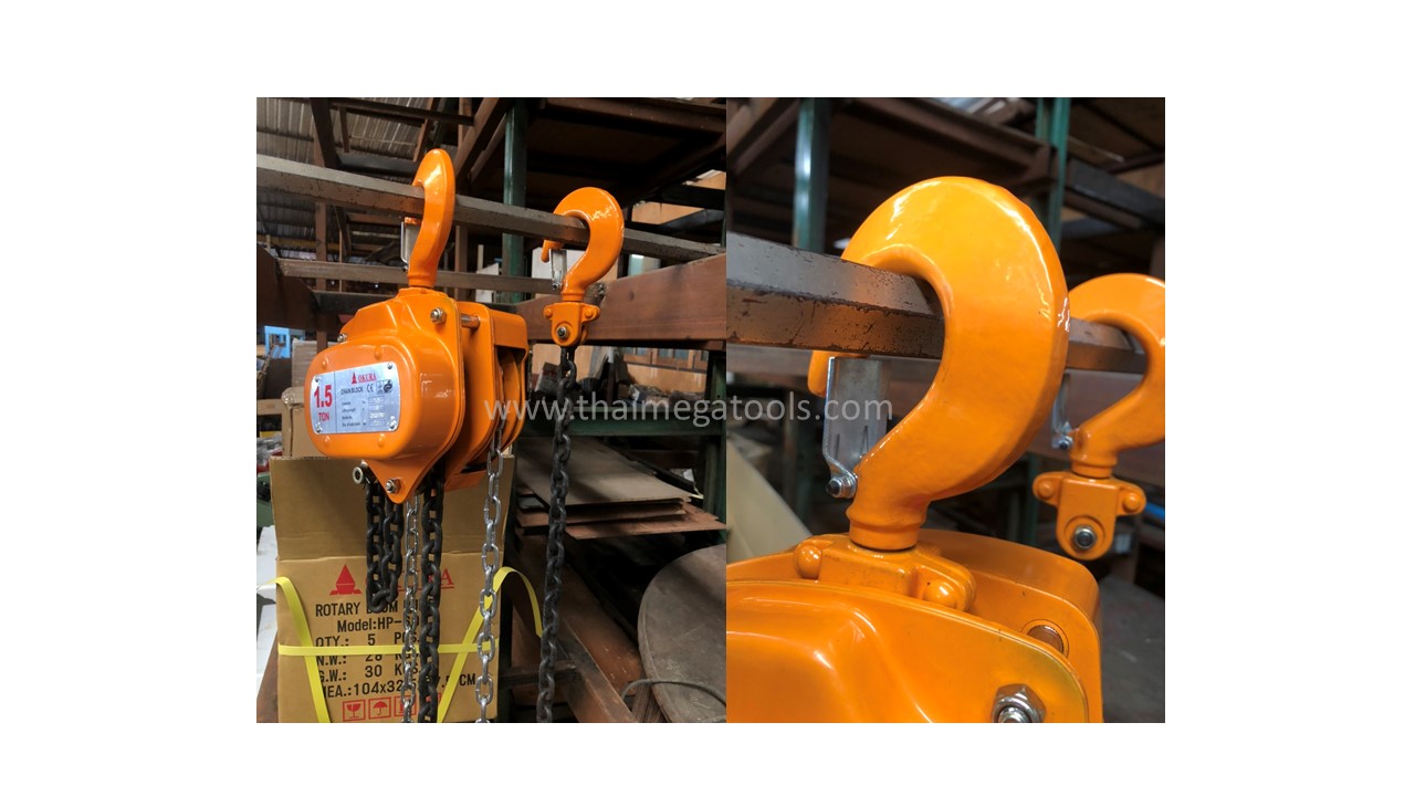 ห้ามใช้งานเกินน้ำหนัก: ตรวจสอบขนาดรอก (เช่น 1.5, 3, หรือ 5 ตัน) และห้ามยกของที่หนักกว่าที่ระบุเด็ดขาด