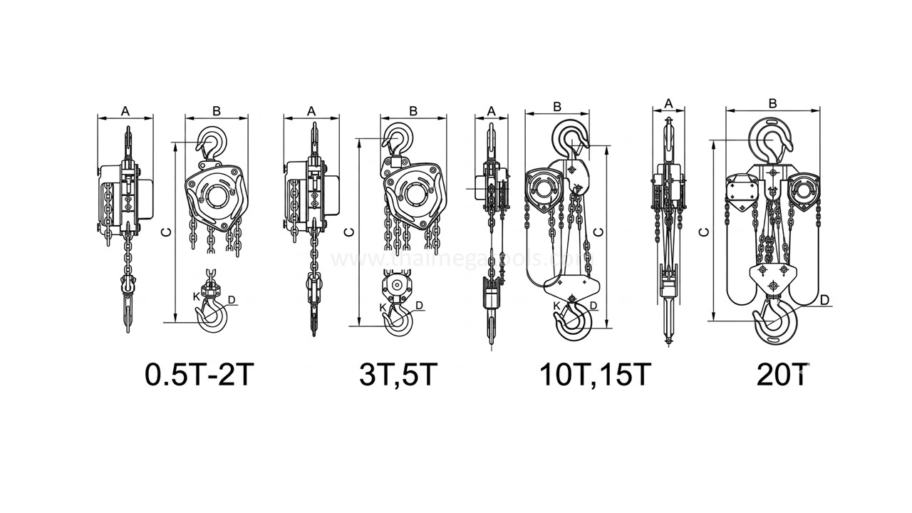 คุณสมบัติ เเละ ขนาดของรอกโซ่มือสาว เเต่ละรุ่น