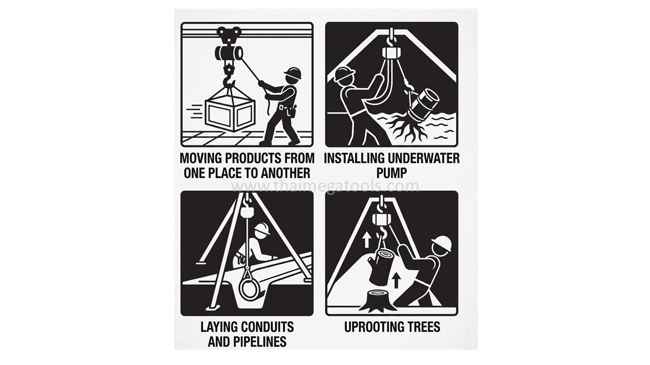 - ตัวอย่างการใช้งาน:ยกเครื่องยนต์ดีเซลหรือชุดเกียร์หนัก