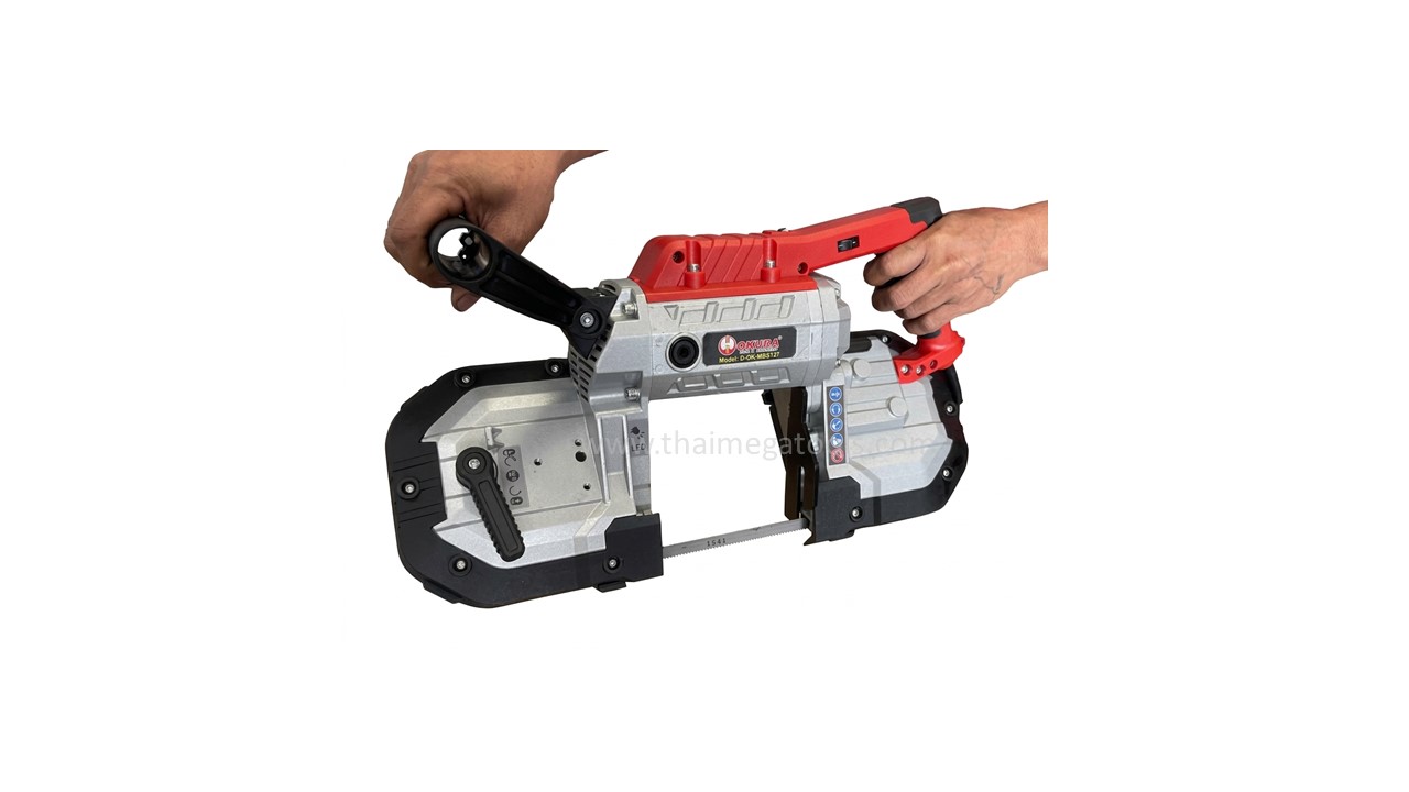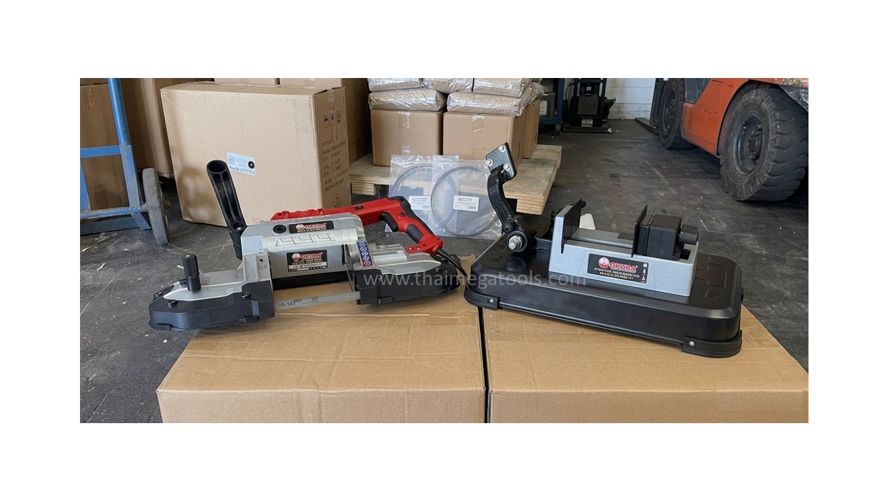 OKURA เครื่องเลื่อยสายพาน เป็นเครื่องเลื่อยสายพานตัดเหล็กประสิทธิภาพสูงขนาด 5 นิ้ว ที่โดดเด่นด้วยฟังก์ชันการทำงานแบบ 2-in-1 ซึ่งสามารถเลือกใช้งานได้ทั้งแบบตั้งโต๊ะพร้อมฐานจับชิ้นงานเพื่อความแม่นยำ หรือถอดตัวเครื่องออกเพื่อใช้งานแบบพกพา (Portable) ในพื้นที่หน้างานที่เข้าถึงยาก ขับเคลื่อนด้วยมอเตอร์กำลังไฟ 1200 วัตต์ ที่สามารถปรับความเร็วรอบได้ถึง 6 ระดับ เพื่อให้เหมาะสมกับวัสดุที่หลากหลาย เช่น เหล็ก, อลูมิเนียม, และสแตนเลส มาพร้อมใบเลื่อยเกรด M42 ที่มีความทนทานสูง ให้รอยตัดที่เรียบเนียนโดยไม่เกิดประกายไฟ และยังมีไฟ LED ในตัวช่วยส่องสว่างขณะปฏิบัติงาน ถือเป็นเครื่องมือที่ตอบโจทย์ช่างมืออาชีพที่ต้องการความคล่องตัว ความปลอดภัย และความแม่นยำในเครื่องเดียว