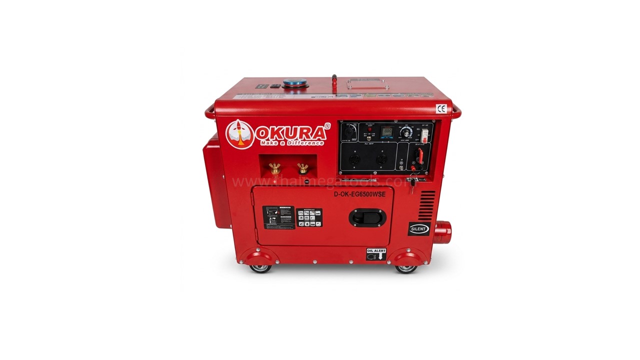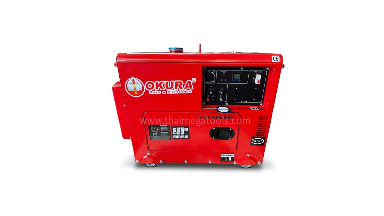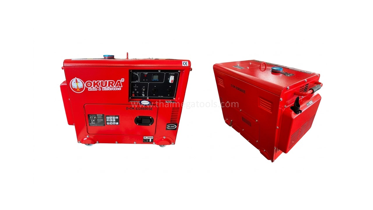 เครื่องกำเนิดไฟฟ้าดีเซล OKURA ซีรีส์ 6500 (รุ่น D-OK-EG6500SE / WSE) โดดเด่นด้วยการออกแบบเป็นแบบ Silent Type หรือตู้เก็บเสียงที่ช่วยลดเสียงรบกวนขณะทำงานได้อย่างดีเยี่ยม ให้กำลังไฟสูงสุดถึง 5.0 KW (22.7 แอมป์) รองรับการใช้งานหนักด้วยเครื่องยนต์ดีเซลที่ประหยัดพลังงานและทนทาน มาพร้อมระบบสตาร์ทกุญแจและหน้าปัดดิจิทัลแสดงสถานะแรงดันไฟที่ชัดเจน นอกจากนี้ยังมีรุ่นพิเศษ (WSE) ที่เพิ่มฟังก์ชันเครื่องเชื่อมไฟฟ้าในตัว (Duty Cycle 60%) ช่วยให้สามารถปั่นไฟและทำงานเชื่อมไปพร้อมกันได้อย่างคุ้มค่า เหมาะสำหรับไซต์งานก่อสร้างที่ต้องการความคล่องตัวและที่พักอาศัยที่ต้องการเครื่องสำรองไฟที่เงียบสนิท