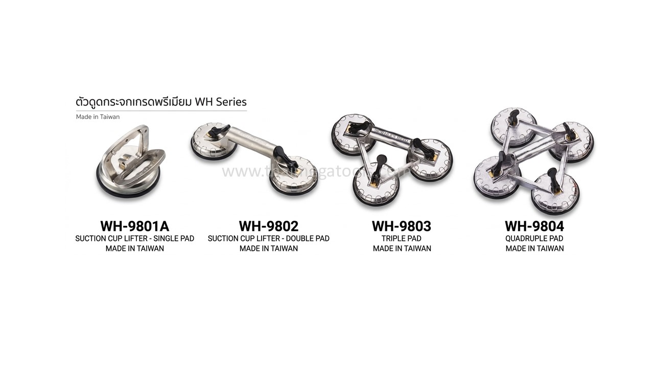 ตัวดูดกระจกเกรดพรีเมียม WH Series (Made in Taiwan) ออกแบบมาเพื่อรองรับงานหนักระดับมืออาชีพโดยเฉพาะ โดดเด่นด้วยโครงสร้างที่เน้นความทนทานเป็นพิเศษและประสิทธิภาพแรงดูดสุญญากาศที่เสถียรและยาวนาน สามารถใช้งานร่วมกับวัสดุผิวเรียบได้หลากหลาย ทั้งกระจก แผ่นโลหะ หินอ่อน และพลาสติก โดยมีรุ่นให้เลือกตั้งแต่ 1 ถึง 4 ตัวดูด รองรับน้ำหนักสูงสุดได้ถึง 120 กก. (ในรุ่น WH-9804) เหมาะสำหรับช่างมืออาชีพที่ต้องการความมั่นใจในความปลอดภัยและความคุ้มค่าจากการใช้งานที่ยาวนาน