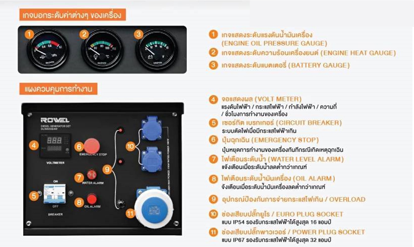 - ถังน้ำมันขนาดใหญ่: ความจุถังเชื้อเพลิง 60 ลิตร รองรับการใช้งานแบบ Full Load ได้ต่อเนื่องนานถึง 24 ชั่วโมง.