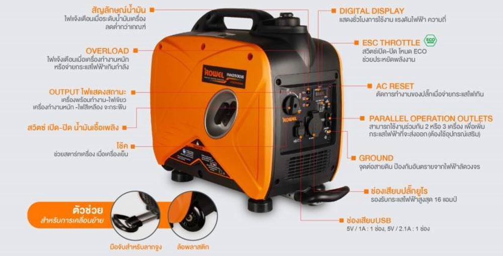 จุดเด่นROWEL RW2500iS เครื่องปั่นไฟระบบอินเวอร์เตอร์ 2.5KW